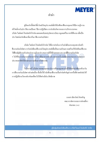คู่มือปฐมนิเทศนักศึกษาฝึกงาน บริษัท ไมเออร์ อินดัสตรีส์  จ ากัด