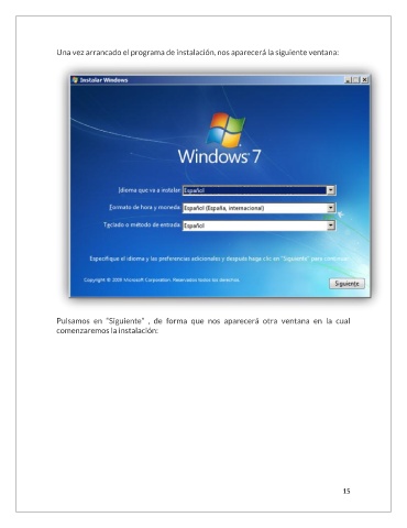 Una vez arrancado el programa de instalación, nos aparecerá la siguiente ventana: Pulsamos en “Siguiente” , de forma que nos aparecerá otra ventana en la cual comenzaremos la instalación: 15
