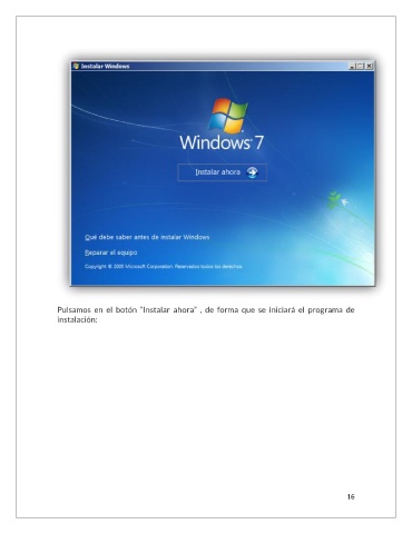 Pulsamos en el botón “Instalar ahora” , de forma que se iniciará el programa de instalación: 16