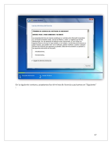 En la siguiente ventana, aceptamos los términos de licencia y pulsamos en “Siguiente” : 17