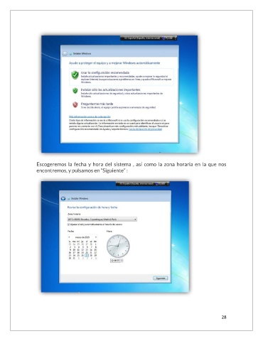 Escogeremos la fecha y hora del sistema , así como la zona horaria en la que nos encontremos, y pulsamos en “Siguiente” : 28