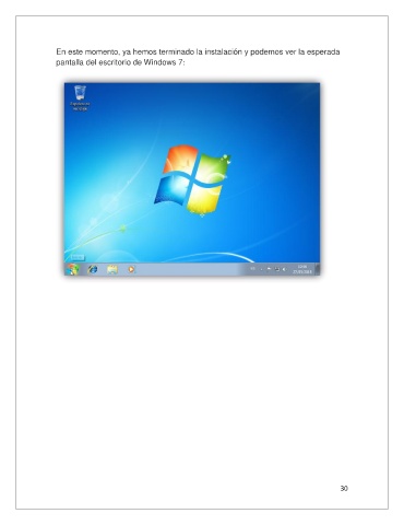 En este momento, ya hemos terminado la instalación y podemos ver la esperada pantalla del escritorio de Windows 7: 30