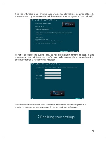 cuenta deseado y pulsamos sobre él. En nuestro caso, escogemos “Cuenta local”: