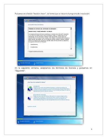 Pulsamos en el botón “Instalar ahora” , de forma que se iniciará el programa de instalación: En la siguiente ventana, aceptamos los términos de licencia y pulsamos en “Siguiente”: 4