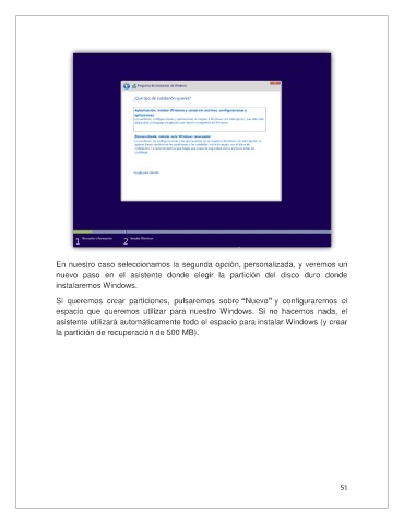 asistente utilizará automáticamente todo el espacio para instalar Windows (y crear
