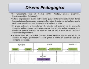 • Se fundamenta bajo el modelo ADDIE (Análisis, Diseño, Desarrollo,