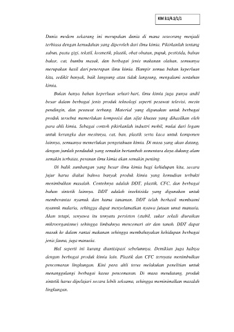 terbiasa dengan kemudahan yang diperoleh dari ilmu kimia. Pikirkanlah tentang