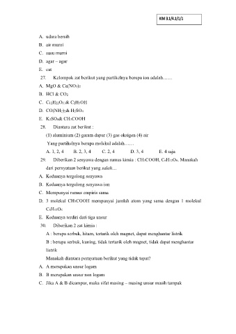27. Kelompok zat berikut yang partikelnya berupa ion adalah……