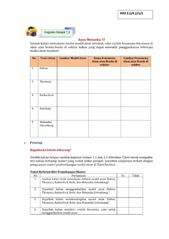 penguasaan materi perkembangan model atom di Tabel berikut.