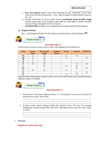 1. Berdasarkan Tabel pada kegiatan belajar 2.1, kelompokkan unsur‐unsur tersebut ke