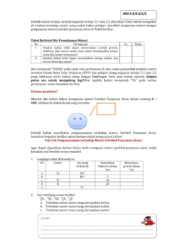 Setelah kalian menuliskan penguasaanmu terhadap materi Partikel Penyusun Atom,