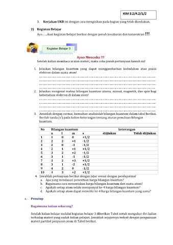 3. Amatilah dengan cermat, kemudian analisislah bilangan kuantum dalam tabel berikut.