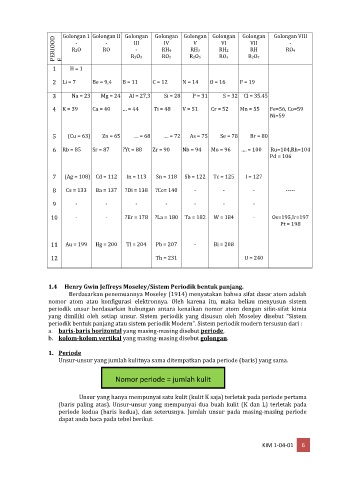 periode kedua (baris kedua), dan seterusnya. Jumlah unsur pada masing‐masing periode