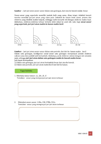 valensi sama dan jumlah kulit bertambah. Akibatnya, jarak elektron valensi dengan inti semakin