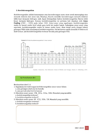 seperiode, keelektronegatifan makin ke kanan makin besar. Akan tetapi perlu diingat bahwa