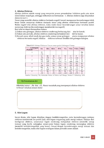 3) Kecuali unsur alkali tanah dan gas mulia, semua unsur golongan utama mempunyai afinitas