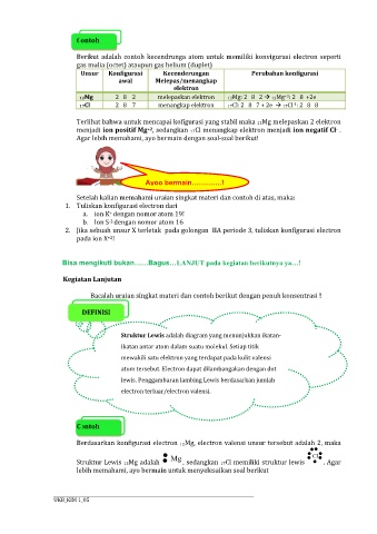 Struktur Lewis 12Mg adalah , sedangkan 17Cl memiliki struktur lewis . Agar
