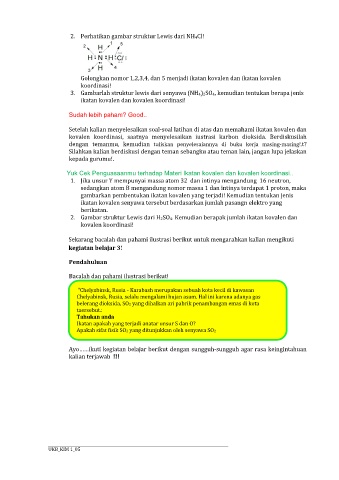 3. Gambarlah struktur lewis dari senyawa (NH4)2SO4, kemudian tentukan berapa jenis