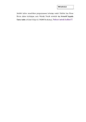 Setelah kalian menuliskan penguasaanmu terhadap materi Hakikat dan Peran Kimia dalam kehidupan serta Metode Ilmiah mintalah tes formatif kepada Guru Anda sebelum belajar ke UKBM berikutnya. Sukses untuk kalian!!!
