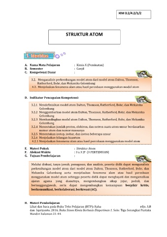 A. Nama Mata Pelajaran : Kimia X (Peminatan)