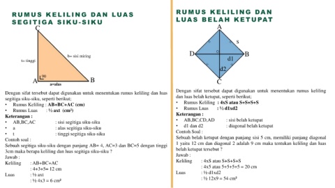segitiga siku-siku, seperti berikut; dan luas belah ketupat, seperti berikut;
