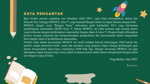 hidayah-Nya sehingga MODUL kelas V yang berjudul Bangun Datar ini dapat disusun dengan baik.