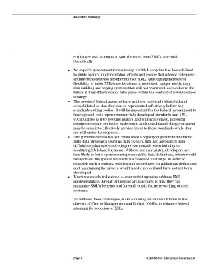 Page 9 - GAO-02-327 Electronic Government: Challenges to Effective Adoption of the Extensible Markup Language