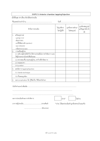บันทึกคําแนะนําเพิ่มเติม ................................................................................................................................. ............................................................................................................................................................... .................................................................................................................................................................. ผลการประเมินทักษะการทําหัตการ ผ่าน* ไม่ผ่าน