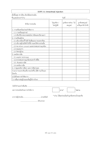 บันทึกคําแนะนําเพิ่มเติม .............................................................................................................................. ผลการประเมินทักษะการทําหัตการ ผ่าน* ไม่ผ่าน