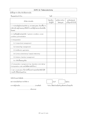 บันทึกคําแนะนําเพิ่มเติม ........................................................................................................................... ผลการประเมินทักษะการทําหัตการ ผ่าน* ไม่ผ่าน