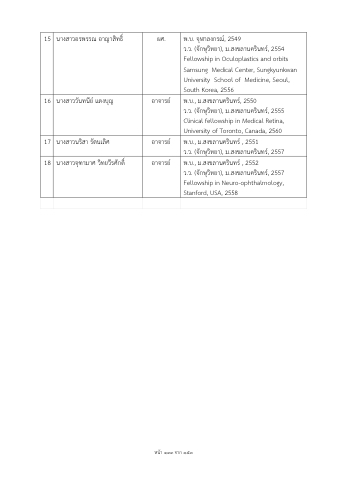ว.ว. (จักษุวิทยา), ม.สงขลานครินทร์, 2557 Fellowship in Neuro-ophthalmology, Stanford, USA, 2558