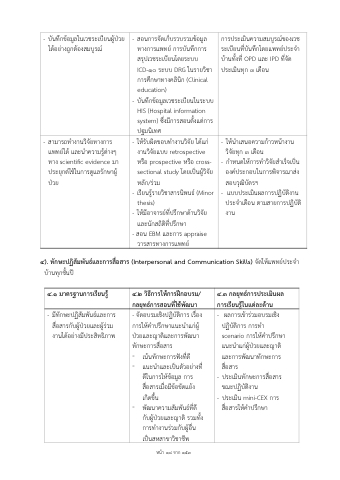 ๔). ทักษะปฏิสัมพันธ์และการสื่อสาร (Interpersonal and Communication Skills) จัดให้แพทย์ประจํา บ้านทุกชั้นปี