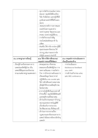 ขอความยินยอม การแจ้งข่าว ร้าย การรักษาความลับและการ เปิดเผยข้อมูล โดยอาจารย์ ปฏิบัติเป็น role model และ ให้การตักเตือนอย่างเหมาะสม เมื่อผู้เข้าฝึกอบรมมีพฤติกรรม ไม่เหมาะสม