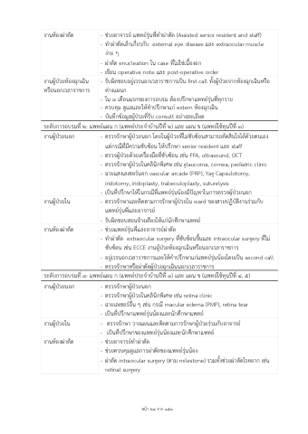 - ผ่าตัด intraocular surgery (ตาม milestone) รวมทั้งช่วยผ่าตัดโรคยาก เช่น
