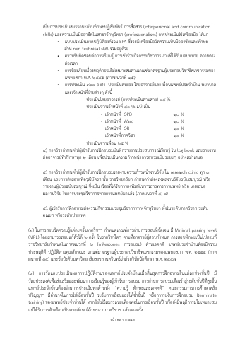 (๓) การวัดและประเมินผลการปฏิบัติงานของแพทย์ประจําบ้านเมื่อสิ้นสุดการฝึกอบรมในแต่ละช่วงชั้นปี มี วัตถุประสงค์เพื่อส่งเสริมและพัฒนาการเรียนรู้ของผู้เข้ารับการอบรม การผ่านการอบรมเพื่อเข้าสู่ระดับชั้นปีที่สูงขึ้น แพทย์ประจําบ้านต้องผ่านการประเมินทุกด้านทั้ง “ความรู้ ทักษะและเจตคติ” คณะกรรมการการศึกษาหลัง ปริญญาฯ มีอํานาจในการให้เลื่อนชั้นปี ระงับการเลื่อนและให้ซ้ําชั้นปี หรือการระงับการฝึกอบรม (terminate training) ของแพทย์ประจําบ้านได้ หากยังไม่มีสมรรถนะเพียงพอในการเลื่อนชั้นปี หรือยังมีพฤติกรรมไม่เหมาะสม แม้ได้รับการตักเตือนเป็นลายลักษณ์อักษรจากภาควิชาฯ แล้วสองครั้ง