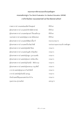 คณะกรรมการพิจารณาและปรับปรุงหลักสูตรฯ ตามเกณฑ์มาตรฐาน The World Federation for Medical Education (WFME) ภาควิชาจักษุวิทยา คณะแพทยศาสตร์ มหาวิทยาลัยสงขลานครินทร์