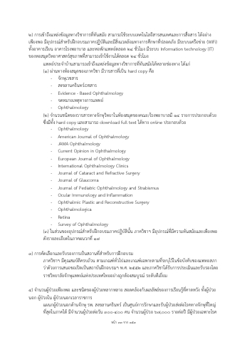 (๒) จํานวนชนิดของวารสารทางจักษุวิทยาในห้องสมุดของคณะ/โรงพยาบาลมี ๑๔ รายการประกอบด้วย ซึ่งมีทั้ง hard copy และสามารถ download full text ได้ทาง online ประกอบด้วย