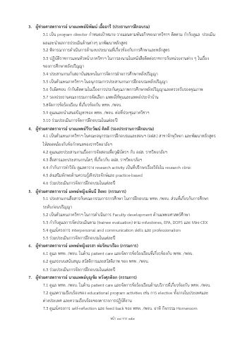 3.6 รับผิดชอบ กํากับติดตามในเรื่องการประกันคุณภาพการศึกษาหลังปริญญาและตรวจรับรองคุณภาพ 3.7 รองประธานคณะกรรมการคัดเลือก แพทย์ใช้ทุนและแพทย์ประจําบ้าน