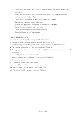 - Describe the fundamental concepts of ophthalmology and health system and its application