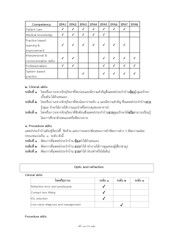 หัตถการที่แพทย์ประจําบ้าน ต้องทําได้ด้วยตนเอง หัตถการที่แพทย์ประจําบ้าน ควรทําได้ (ทําภายใต้การดูแลของผู้เชี่ยวชาญ) หัตถการที่แพทย์ประจําบ้าน อาจทําได้ (ช่วยทําหรือได้เห็น)