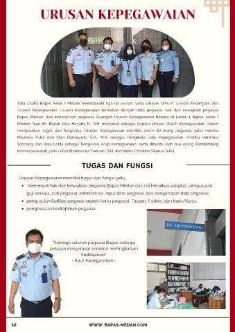 Bapas Medan, dan kedisiplinan pegawai. Ruangan Urusan Kepegawaian berada di Lantai 1 Bapas Kelas I