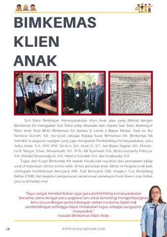 Klien Anak (Kasi BKA). Bimkemas KA berada di Lantai 2 Bapas Medan. Saat ini, Ibu