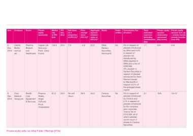 Date Company Sector Private Market IPO Sell down Price Aggregate Banks Under- Commission /fee Total Private equity Private equity