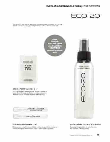 Eco-20 A/R Lens Cleaner features a virtually odourless eco-based A/R formula. Safe to use on any lens type. Complementary with our Antimicrobial cloth.