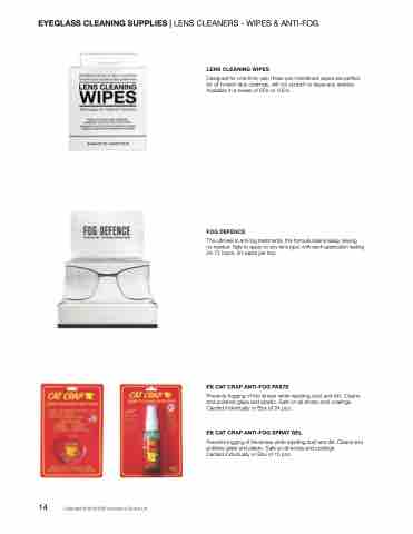 Prevents fogging of the lenses while repelling dust and dirt. Cleans and polishes glass and plastic. Safe on all lenses and coatings. Carded individually or Box of 24 pcs.