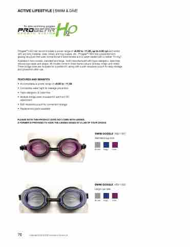 Progear® H2O can accommodate a power range of +6.00 to -11.00, up to 3.00 cyl and works with any lens material, clear, tinted, anti-fog coated, etc.. Progear® H2O has a patented lens glazing structure that uses conventional V-bevel lenses and is water-sealed with a rubber “O-ring”.