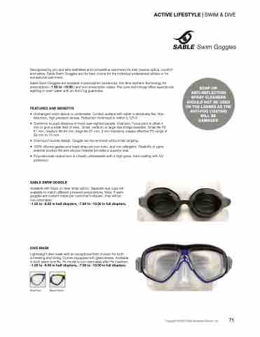 Sable Swim Goggles are available in prescription (advanced, thin-lens aspheric technology for prescriptions -1.50 to -10.00.) and non-prescription styles. Flat Lens technology offers spectacular sighting in open water with an Anti-Fog guarantee.