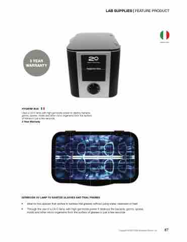 • Ideal for the optician that wishes to sanitize trial glasses without using water, cleansers or heat