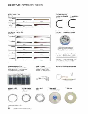 Assortment of black and brown PVC temple tips in 1.2 - 1.6 mm core sizes. Five pairs of each color and size.