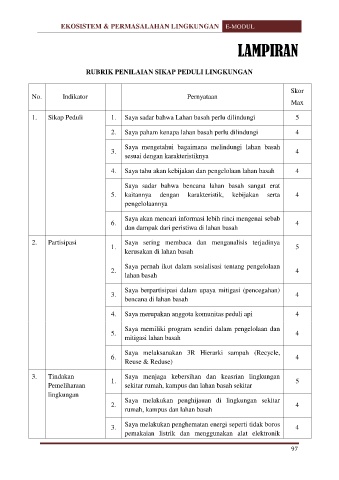 1. Sikap Peduli 1. Saya sadar bahwa Lahan basah perlu dilindungi 5